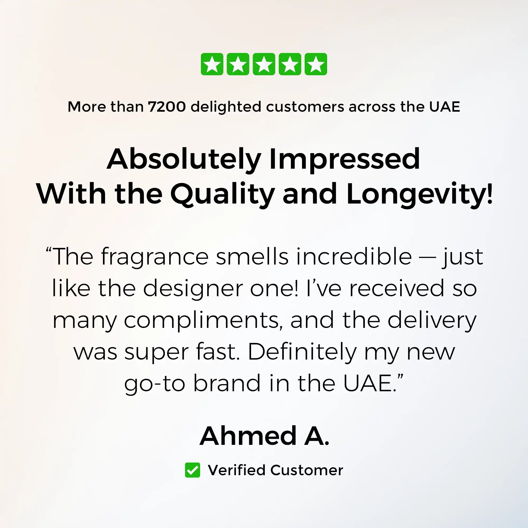 “The fragrance smells incredible—just like the designer one. Tons of compliments and super-fast delivery. My new go-to in the UAE!”
